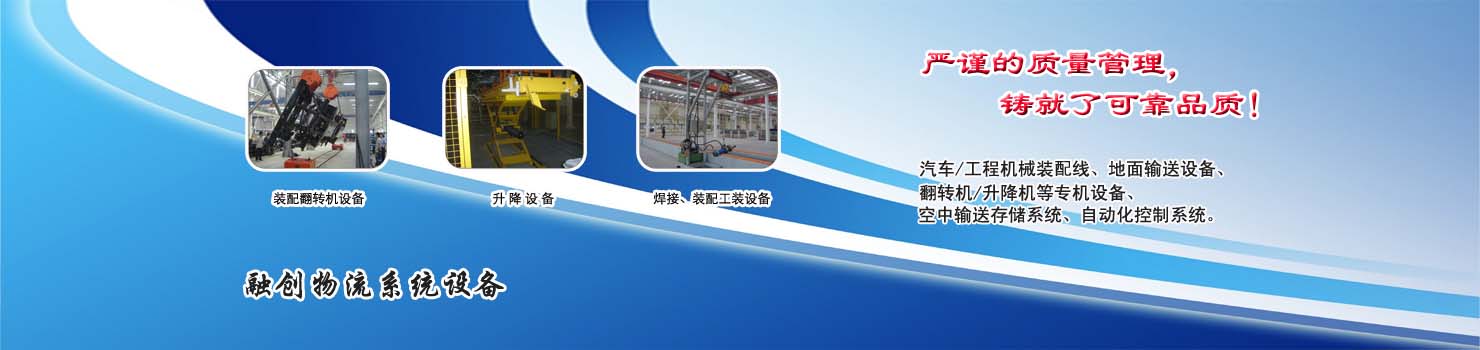 無錫市融創(chuàng)物流系統(tǒng)設(shè)備有限公司專業(yè)設(shè)計(jì)制造翻轉(zhuǎn)機(jī),裝配翻轉(zhuǎn)機(jī)設(shè)備,各種生產(chǎn)線總裝線部裝線,是翻轉(zhuǎn)機(jī)的專業(yè)設(shè)計(jì)制造廠家,最新翻轉(zhuǎn)機(jī)價(jià)格?來自無錫融創(chuàng);無錫融創(chuàng)公司主要產(chǎn)品系列:裝配翻轉(zhuǎn)機(jī)設(shè)備、升降設(shè)備、焊接裝配工裝設(shè)備,工程機(jī)械總裝部裝線、卡車總裝及部件裝配線、轎車總裝及部件裝配線、白色家電裝配線、農(nóng)業(yè)機(jī)械裝配生產(chǎn)線、地面輸送設(shè)備、空中輸送設(shè)備、電動(dòng)氣動(dòng)小車等。無錫融創(chuàng)生產(chǎn)的各類專業(yè)成套設(shè)備已廣泛應(yīng)用于轎車、卡車、客車、各類工程機(jī)械、發(fā)動(dòng)機(jī)、車橋、農(nóng)業(yè)機(jī)械、郵政、家電等行業(yè),特別在工程機(jī)械產(chǎn)品裝配線、卡車生產(chǎn)裝配線領(lǐng)域,是國(guó)內(nèi)最大的設(shè)備供應(yīng)商之一。
